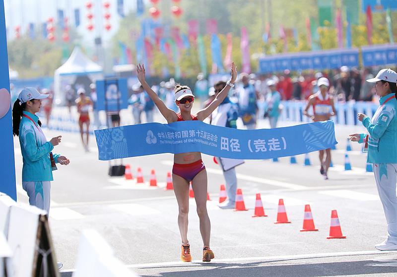 △田径女子20公里竞走决赛,杨家玉夺冠。